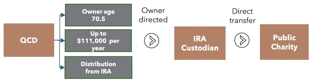 - Individuals age 70.5 and older may transfer up to $111,000 per year from their IRA* to a qualified charity without recognizing the distribution as taxable income